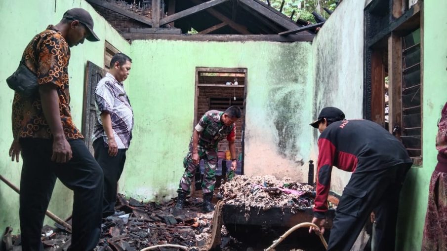 Korsleting Listrik Picu Kebakaran, Koramil 0806/11 Panggul Segera Beraksi
