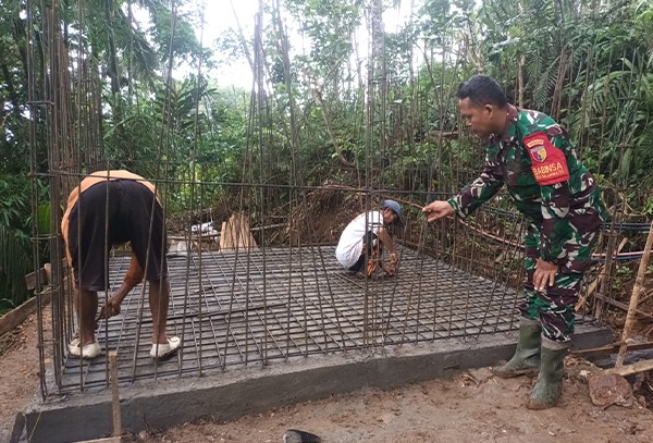 Suasana gotong royong tampak kental di lokasi pembangunan. Para anggota TNI bersama petani bahu-membahu membangun rumah pompa sebagai bagian dari instalasi irigasi yang akan menyalurkan air dari sumber terdekat menuju lahan pertanian. Kegiatan tersebut mencerminkan kemanunggalan TNI dan rakyat yang menjadi ciri khas dalam setiap kegiatan pembangunan di daerah.