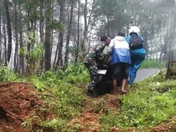 Sigap di Tengah Longsor, Babinsa Trenggalek Turun Tangan Bantu Warga