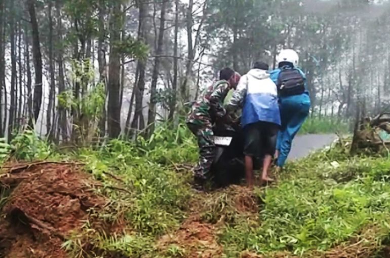 Bagi warga pegunungan seperti Bendungan, risiko longsor sudah bukan hal baru. Namun intensitas hujan kali ini jauh lebih tinggi dari biasanya. Beberapa pelajar yang hendak berangkat sekolah terpaksa berhenti di tengah jalan, menatap cemas tumpukan tanah yang menutup jalan desa mereka. Di saat genting itu, Babinsa Desa Depok, Sertu Hariyanto dari Koramil 0806-04/Bendungan, datang sebagai sosok pertama yang menembus lokasi bencana.
