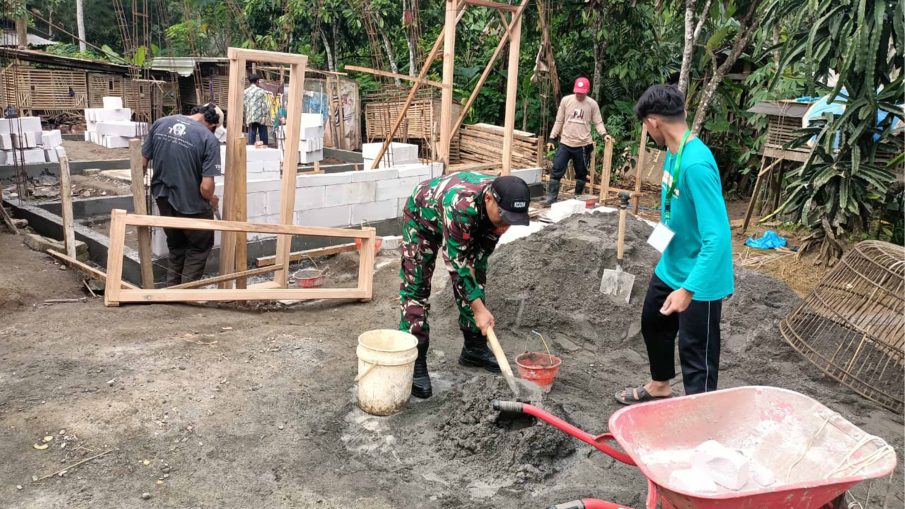 Suasana kebersamaan terasa begitu hangat dan penuh semangat saat Babinsa dan warga bergandengan tangan, saling membantu tanpa pamrih. Mereka bersama-sama mengangkat kayu, mencampur adonan pasir dan semen, memaku atap, hingga memperbaiki dinding rumah dengan wajah penuh antusias. Di sela-sela kerja keras, tawa dan canda terdengar akrab, menandakan betapa kuatnya semangat gotong royong yang masih hidup di tengah masyarakat. Kehadiran Babinsa di lapangan bukan sekadar memimpin, tetapi menjadi inspirasi dan penggerak utama yang menyatukan warga dalam satu tujuan mulia, membangun harapan melalui kebersamaan.