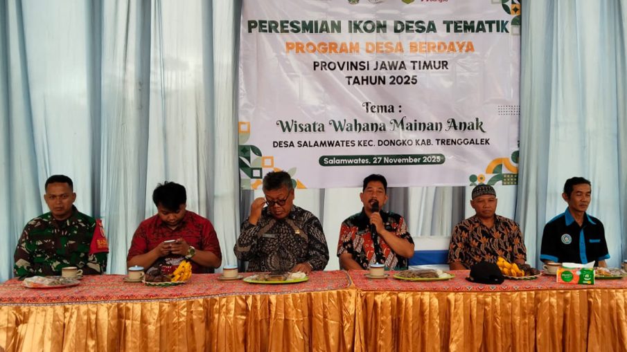 Trenggalek – Upaya memperkuat pemberdayaan masyarakat desa terus menjadi prioritas TNI-Polri melalui jajaran teritorial. Di Kabupaten Trenggalek, sinergi itu kembali terlihat ketika Babinsa Salamwates, Serda Teguh Arifin dari Koramil 0806-13/Dongko, bersama Bhabinkamtibmas Briptu Kelvin, hadir mendukung peresmian Ikon Tematik Program Desa Berdaya di Desa Salamwates, Kecamatan Dongko, Kamis (27/11/2025). Kehadiran keduanya menjadi bukti nyata komitmen lintas institusi dalam mendorong pembangunan desa yang adaptif dan berkelanjutan.