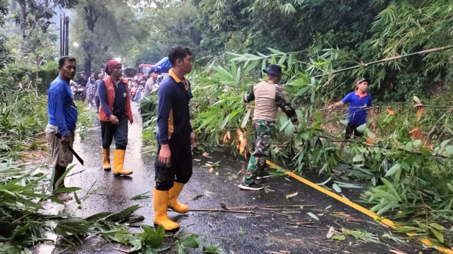 Cuaca ekstrem yang berlangsung sejak pukul 15.30 WIB hingga sekitar pukul 17.00 WIB membuat kondisi tanah di sekitar tepi jalan menjadi labil. Tiupan angin kencang memperparah keadaan, sehingga satu rumpun bambu tumbang dan melintang di badan jalan, membahayakan pengguna jalan yang melintas.