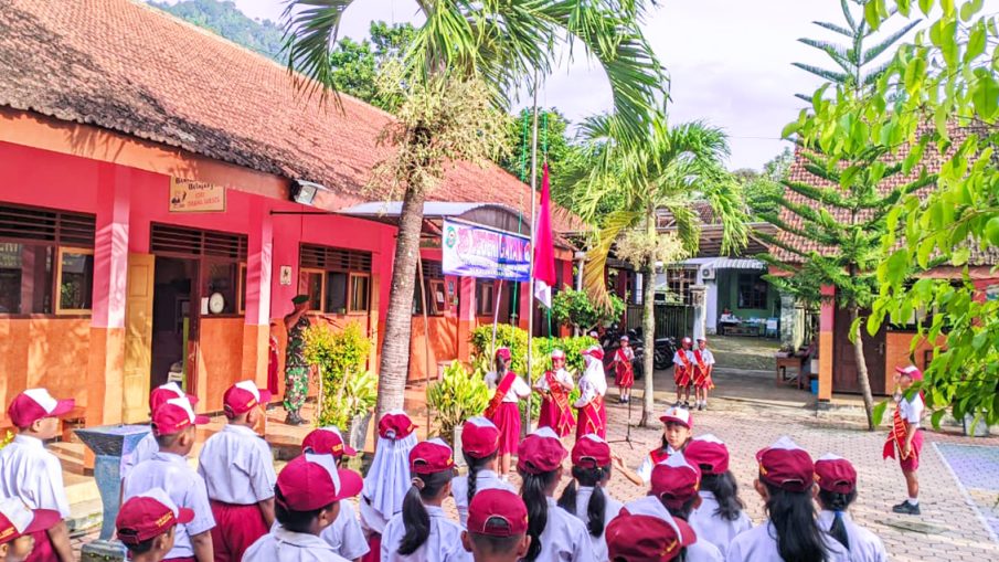 TNI Bina Karakter Siswa SD Lewat Upacara Bendera di SDN Gayam