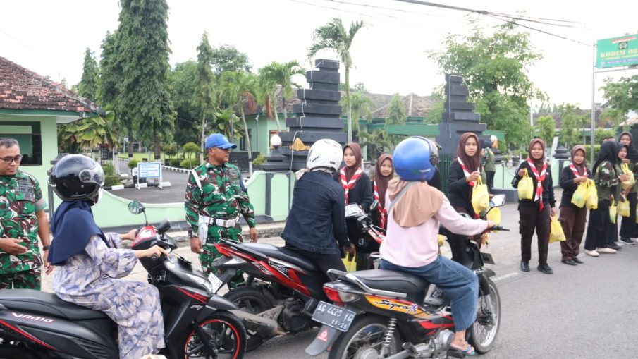 Trenggalek – Suasana menjelang waktu berbuka puasa di depan Makodim 0806/Trenggalek, Selasa sore (17/3/2026), tampak berbeda dari biasanya. Sejumlah anggota Pramuka Saka Wira Kartika binaan Kodim 0806/Trenggalek berdiri di tepi jalan sambil membawa paket makanan berbuka puasa yang siap dibagikan kepada masyarakat yang melintas. Kegiatan bertajuk Ramadan Berbagi Takjil itu menjadi bagian dari upaya mengisi bulan suci Ramadan dengan aktivitas sosial yang bermanfaat dan menumbuhkan kepedulian antarsesama.