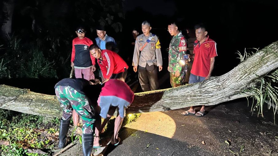 TNI-Polri Sigap Evakuasi Pohon Tumbang Akibat Cuaca Ekstrem di Trenggalek