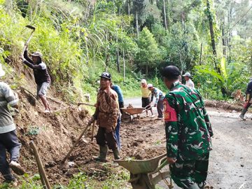 Bahu-Membahu Jaga Desa, TNI dan Warga Masaran Kompak Cegah Longsor